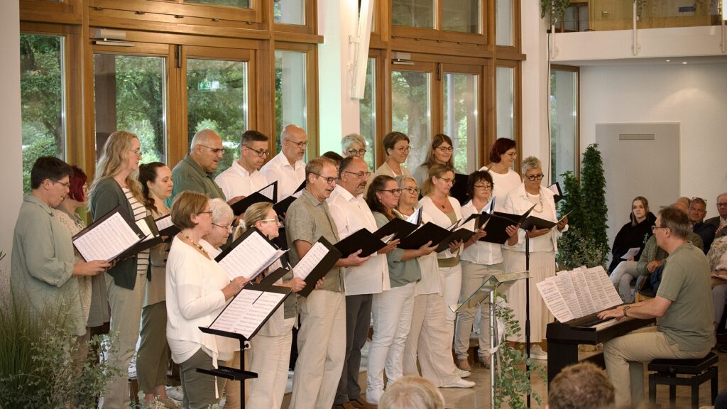 Einen Konzertsaal mit Blick in das Grün der Natur und Lieder, mit denen die Schönheit der Schöpfung angepriesen wird: mit dieser Kombination begeisterte der Chor St. Sebastian am vergangenen Sonntagnachmittag die Konzertbesucher. Ungewöhnlicher Veranstaltungsort war die Trauerhalle des Waldfriedhofes, die auch aufgrund der hervorragenden Akustik ein idealer Ort für die musikalischen Darbietungen des Chores und der Instrumental-Solisten war.